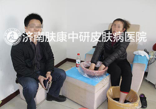 梁女士是山东菏泽人,今年35岁。于今年3月10日,在丈夫的陪同下来到济南肤康中研皮肤病医院治疗灰指甲。